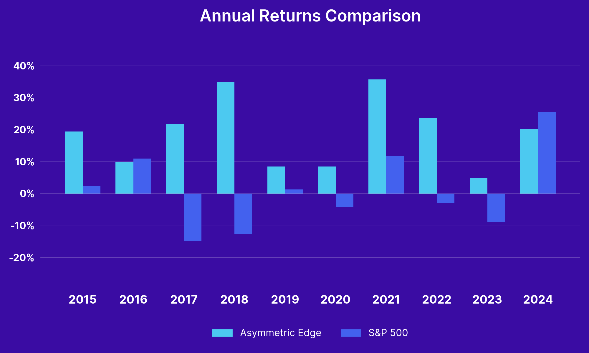Historically, the Asymmetric Edge portfolio has successfully identified opportunities in difficult markets, although past performance does not guarantee future results.