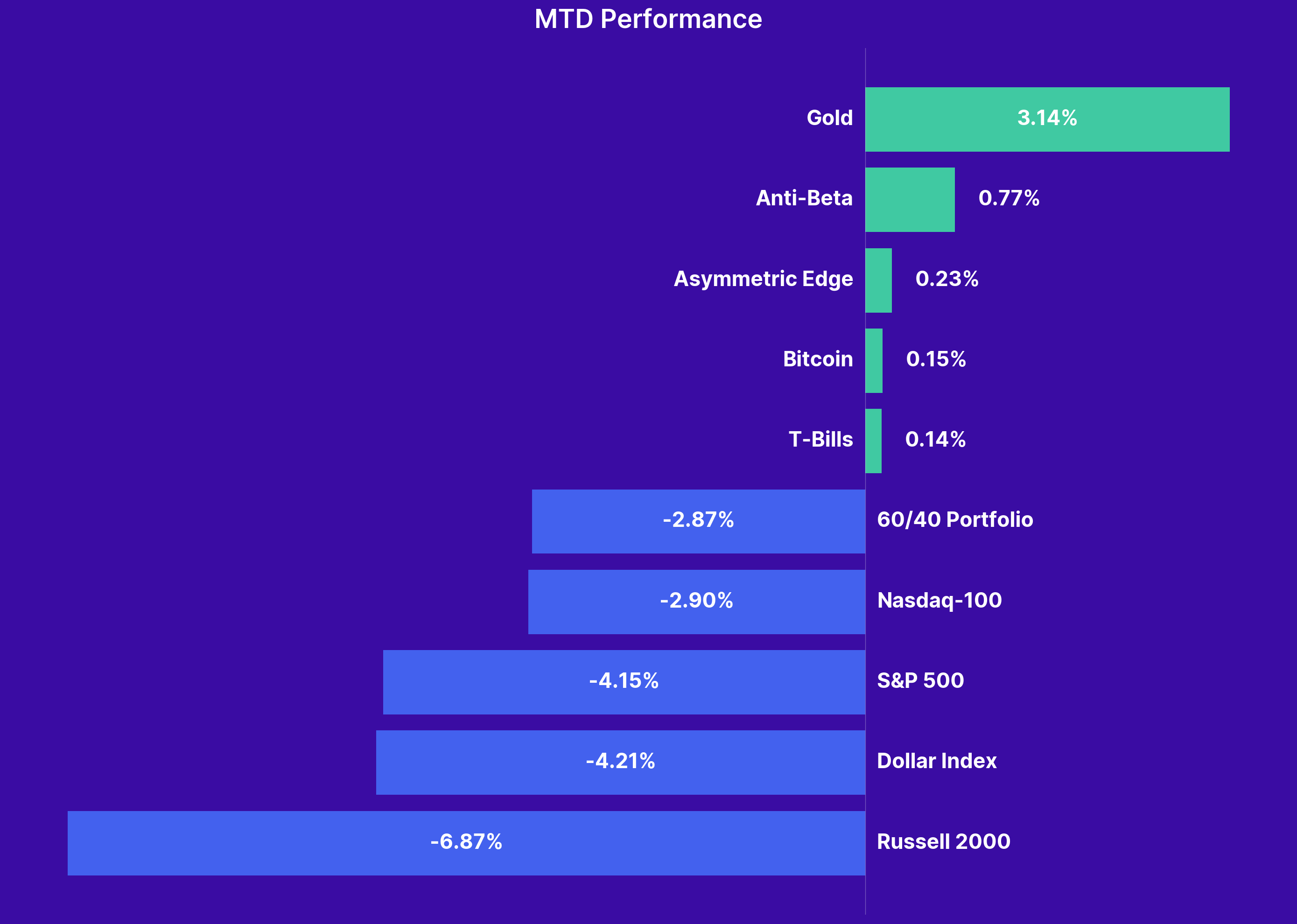 Managing risk effectively during market stress is essential. Notably, the only positive-performing assets this month have been those included in the Asymmetric Edge portfolio. Although the portfolio has weaker months, this highlights the effectiveness of momentum-based portfolio construction.
